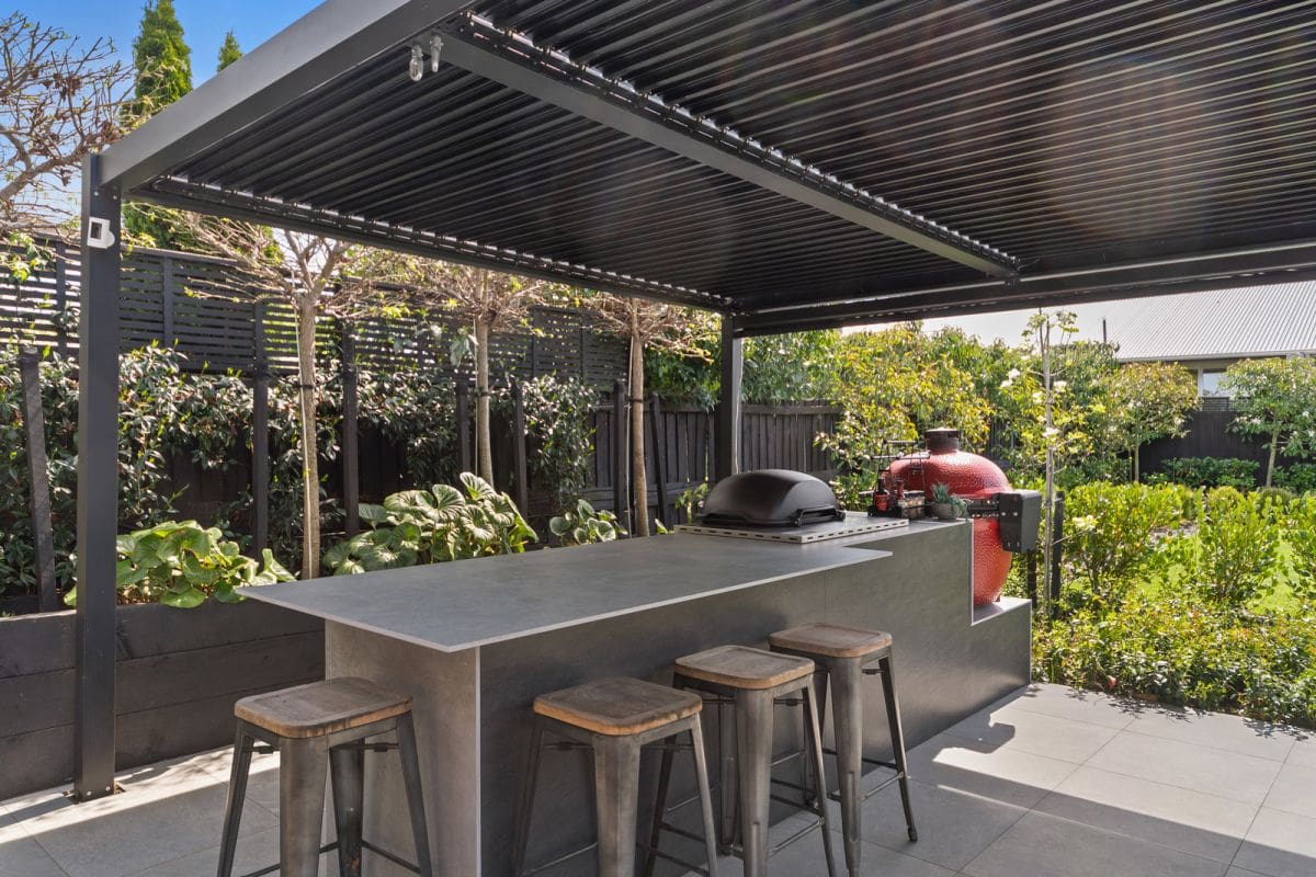 The current owners have created superb outdoor living on this 809sqm, North facing site. French doors open onto a decked patio shaded with an electric awning and a tiled terrace has two pergolas with louvres covering a barbeque area and al fresco dining opposite. A built in BBQ as well as a Kamado Joe ceramic charcoal grill and bar fridge are included in the sale along with a sizeable Spa pool nestled in the garden. Entering from Glandovey Rd, a generous forecourt behind the electric gate has plenty of room for extra vehicles in front of the double garage. There is secure parking for a trailer or perhaps a boat or caravan.