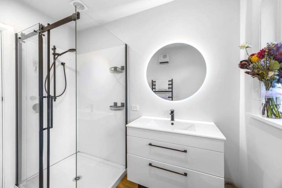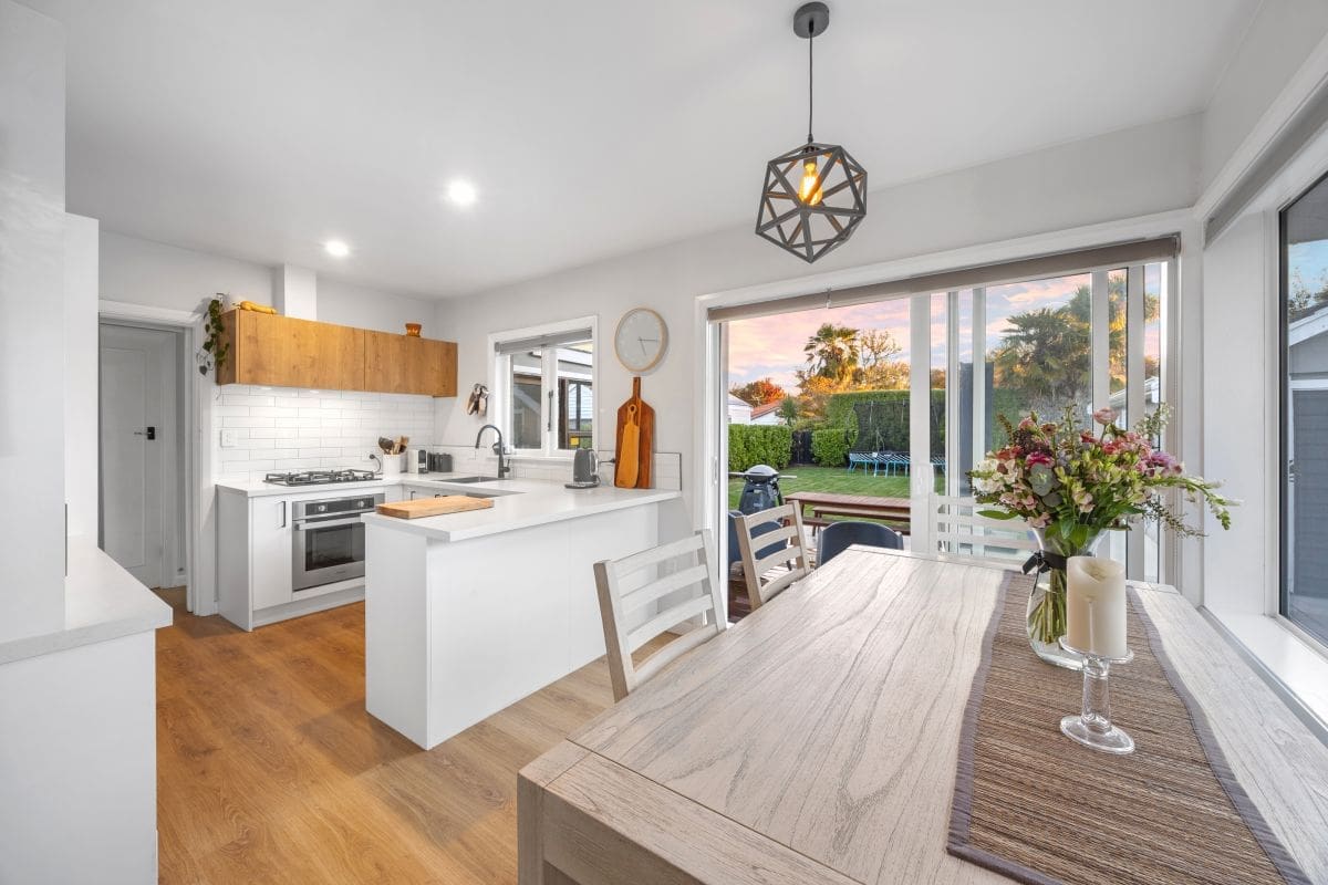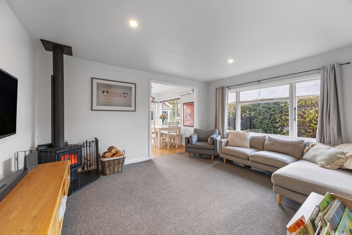 Living is deliberately defined. A generous lounge settles into its own domain, with a log burner taking charge through winter, while the open-plan kitchen and dining space shifts the tone, introducing a more contemporary edge and the comfort of a heat pump.