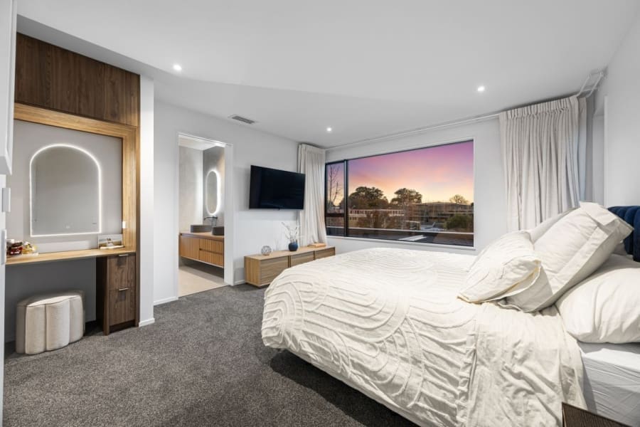Accommodation is carried upstairs, led by a master suite that captures views of the setting sun and completes its profile through a make-up nook, walk-in wardrobe and finely finished en-suite.