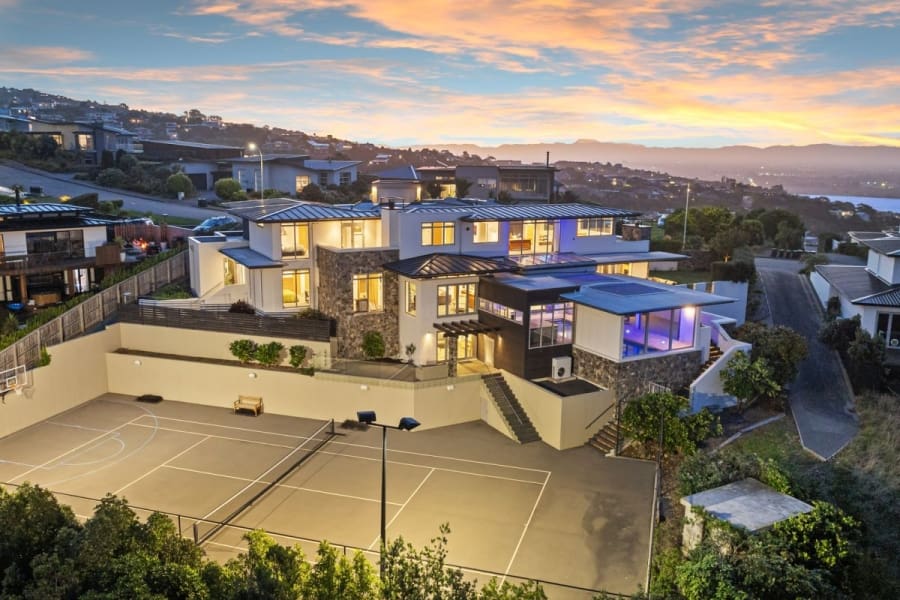 Harmony and warmth are certain, with three gas fires, under tile heating, and a ducted heat pump system throughout. There are views from almost every room, both intimate, down to Moncks Bay, and vast, across South Shore to Pegasus Bay and beyond. A glass staircase floats between levels where lavish accommodation and bathroom facilities permit a varying array of occupants, permanent or by invitation. There are six bedrooms, three living rooms, plus a Home Theatre, and a dedicated office with custom-made desk and shelving. The guest suite could be a possible alternative to the master upstairs, however this vast space for relaxing as well as sleeping will be sure to capture your heart when you experience the views, exquisite bathroom with double shower, bath, WC with Bidet, and WIR dressing area.